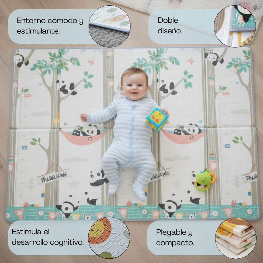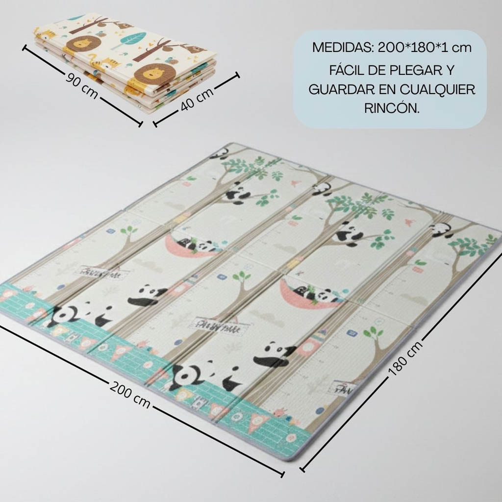 Alfombra para bebé plegable 200x180cm, reversible pandas/bosque
