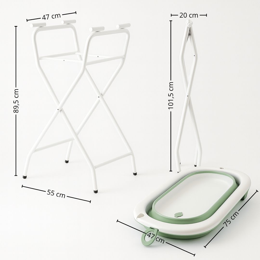 - Estructura resistente y segura: el soporte está fabricado con materiales de alta calidad que garantizan estabilidad y durabilidad, soportando el peso de la bañera y del bebé sin movimientos indeseados. Incluye cintas de fijación para unir firmemente la bañera al soporte.