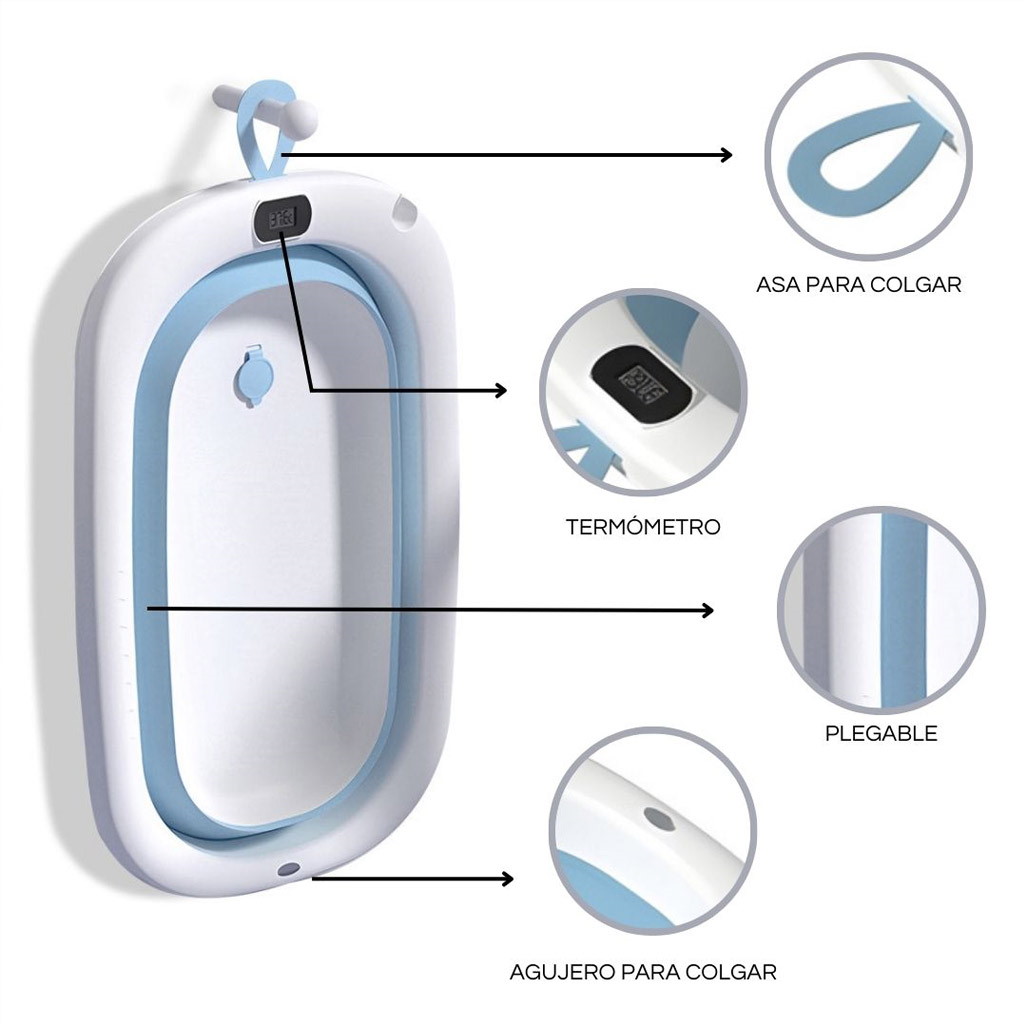 Bañera Bebé Plegable Simple con Termómetro y Cojín Reductor | Color Azul