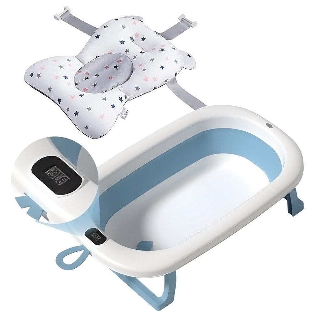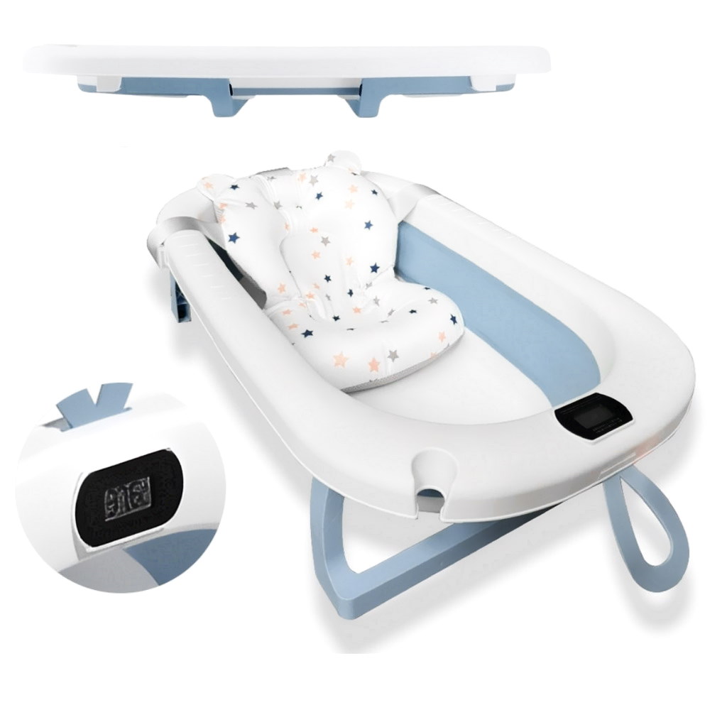 Bañera bebé plegable ESSENCE con termómetro y cojín reductor, color Azul