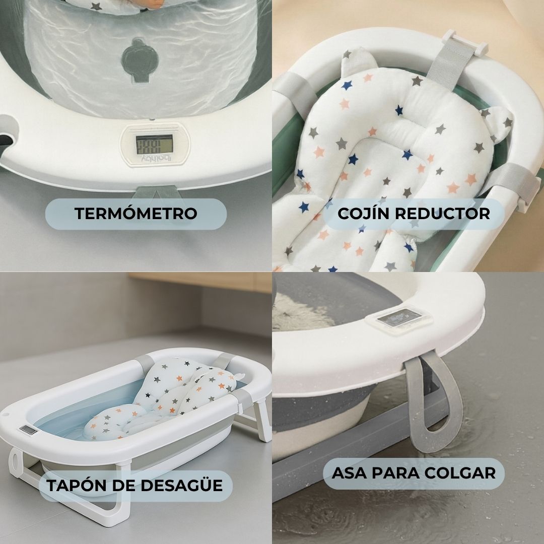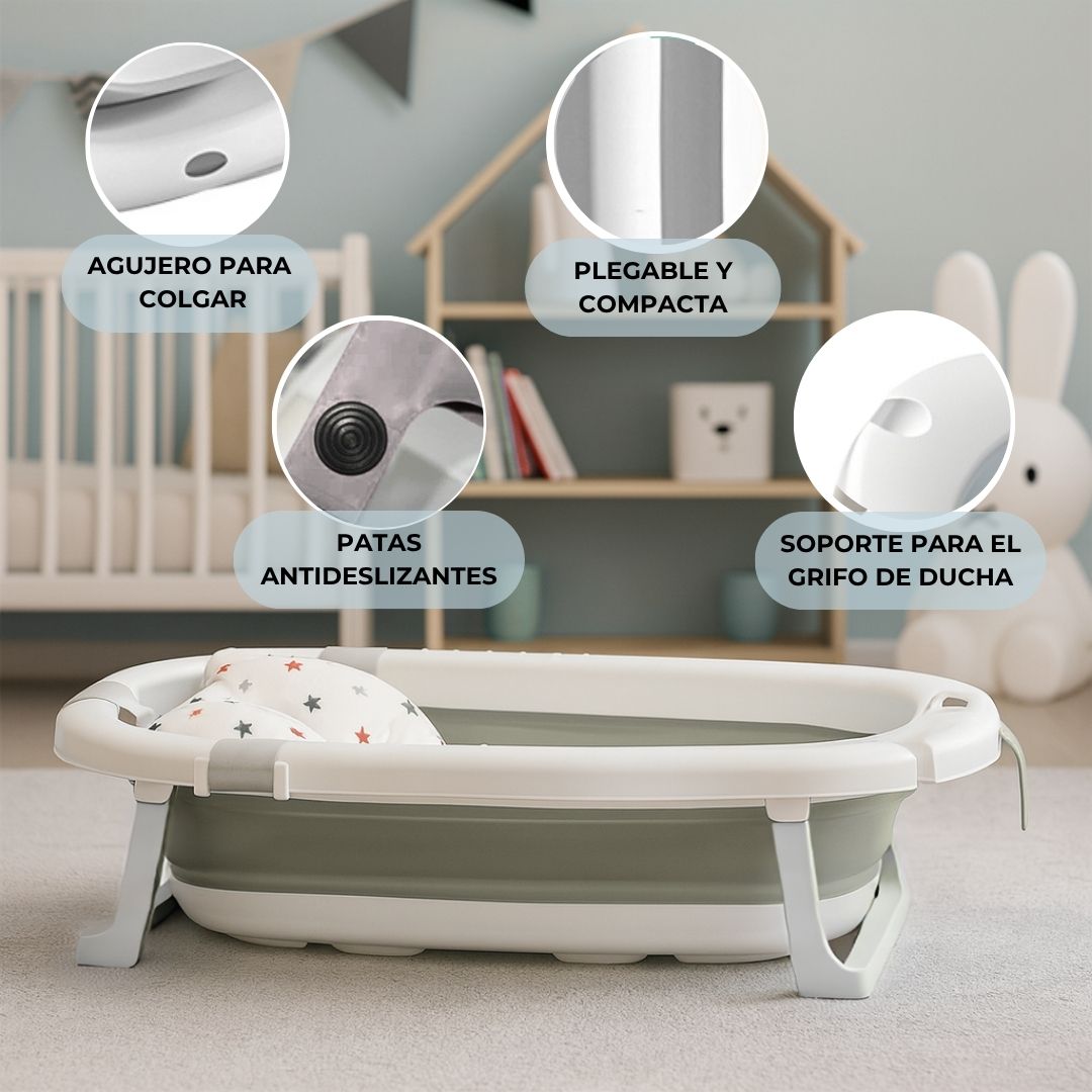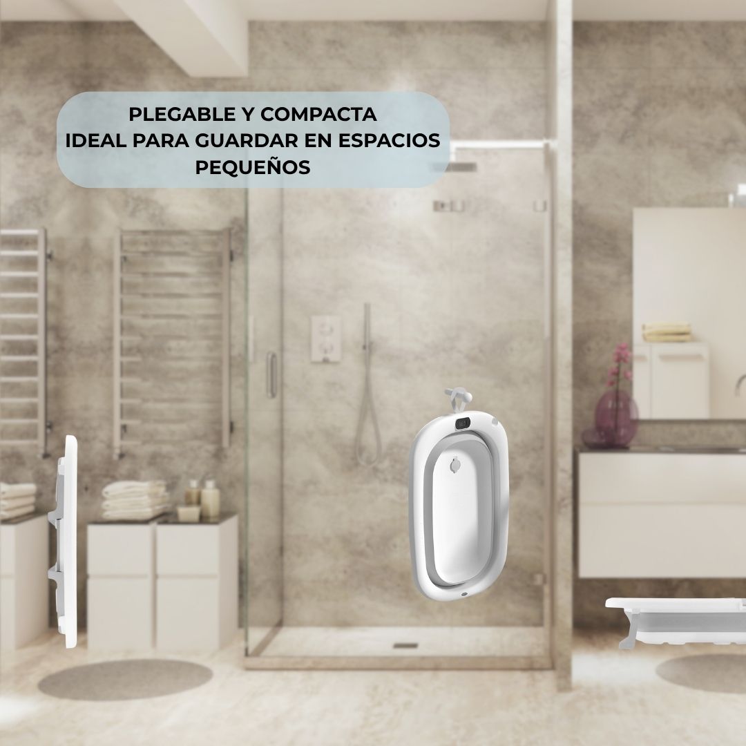 • Diseño plegable y compacto: esta bañera se pliega de forma sencilla y rápida, permitiendo un almacenamiento fácil y eficiente. Perfecta para hogares con espacio limitado, viajes o visitas a casa de familiares.