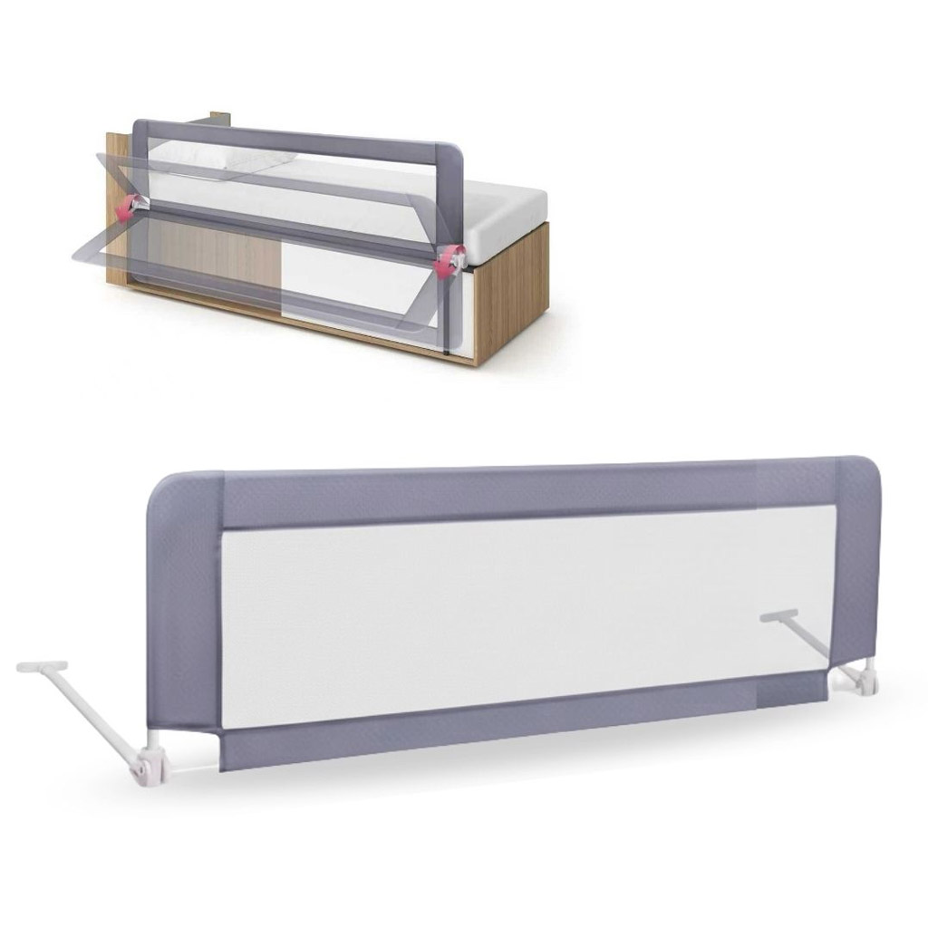Barandilla se seguridad para cama de 90cm, color gris y blanco. Diseñada para ofrecer una protección completa durante el sueño del bebé o niño, evitando caídas y proporcionando tranquilidad a los padres. Gracias a sus 10 alturas ajustables, se adapta a prácticamente cualquier tipo de colchón, garantizando un ajuste firme, seguro y sin huecos peligrosos. Su sistema plegable permite abrir y cerrar la barandilla fácilmente, facilitando el acceso a la cama sin desmontarla. El panel transparente permite ver al bebé en todo momento, favoreciendo también la ventilación y evitando sensación de encierro. Fabricada con materiales resistentes y estructura estable, es ideal para la transición de la cuna a la cama. Perfecta para camas individuales, matrimoniales o infantiles, esta barandilla ofrece seguridad, comodidad y diseño en un solo producto.