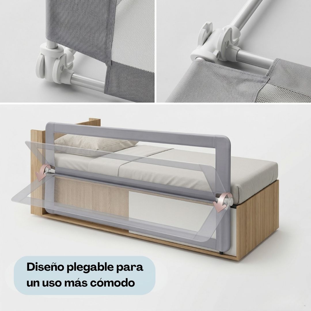 - Acceso cómodo sin desmontar: El sistema plegable permite bajar la barandilla fácilmente para entrar o salir de la cama.