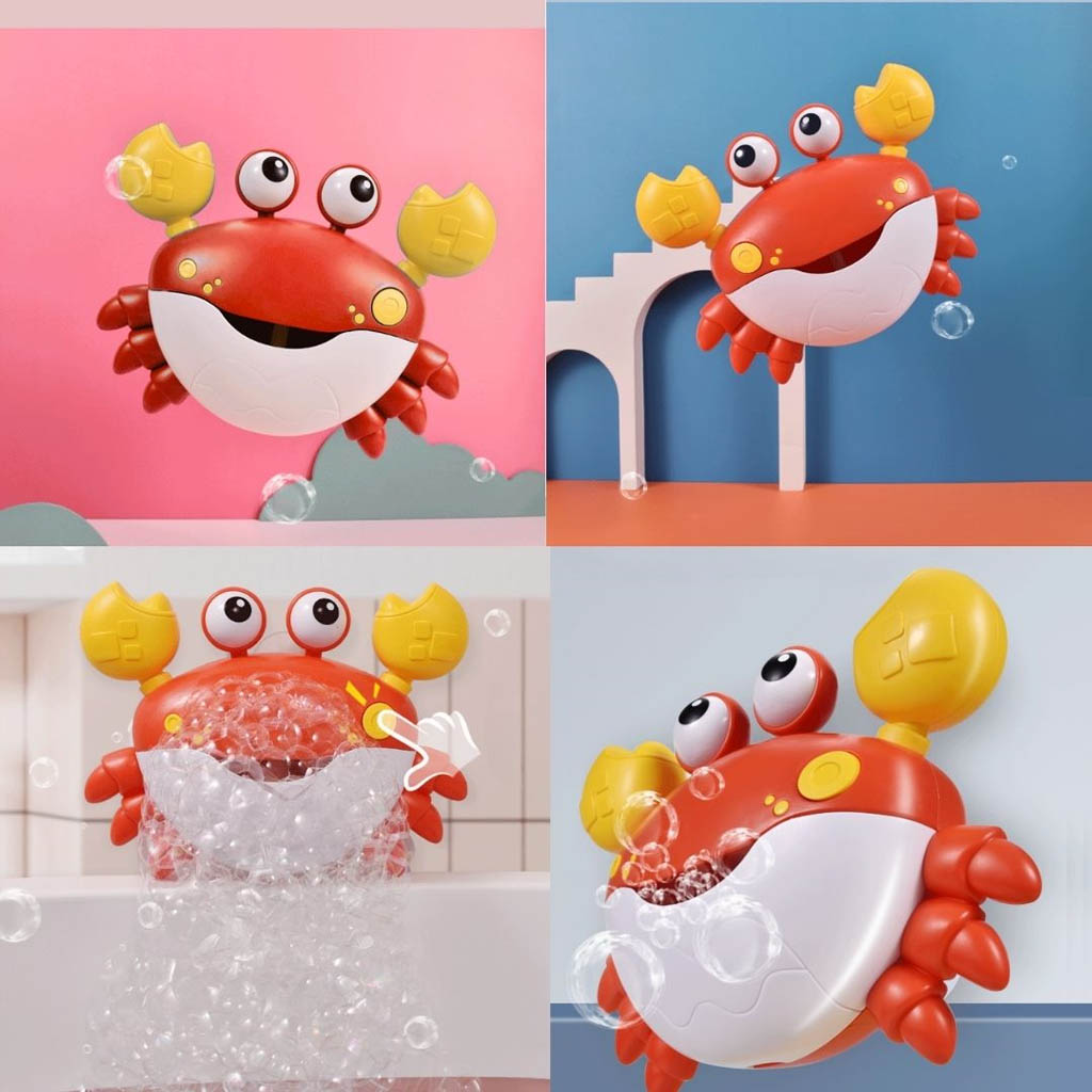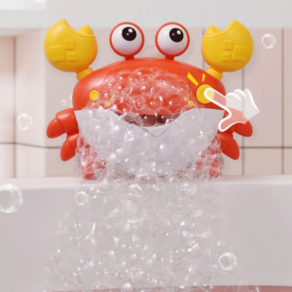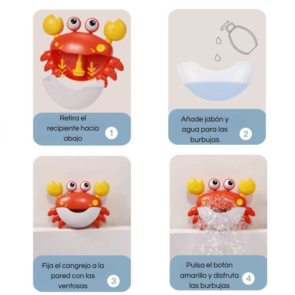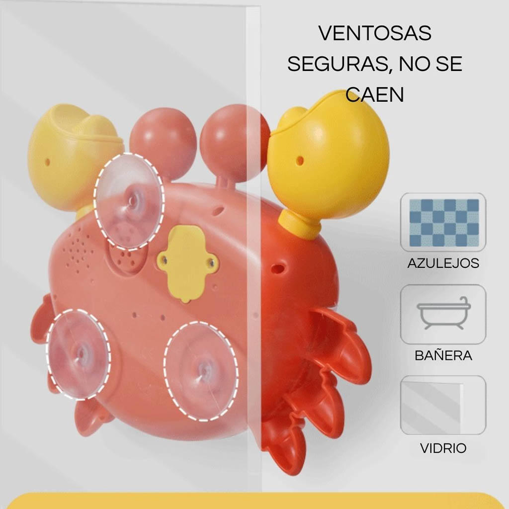 Juguete de baño con diseño de cangrejo que convierte la hora del baño en un momento divertido y especial para los más pequeños. Basta con añadir jabón líquido y agua en su depósito, presionar un botón y el cangrejo comenzará a generar una cascada de espuma mientras reproduce música infantil. Su sistema de ventosas en la parte trasera permite fijarlo fácilmente en azulejos o superficies lisas, manteniéndolo seguro y estable durante el juego. Ideal para estimular los sentidos del bebé, fomentar el amor por la hora del baño y crear momentos alegres y relajados en familia.