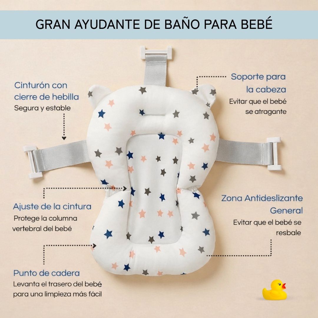 • Cojín reductor incluido: el cojín ergonómico mantiene al bebé seguro y cómodo durante el baño, adaptándose a su tamaño y evitando deslizamientos.